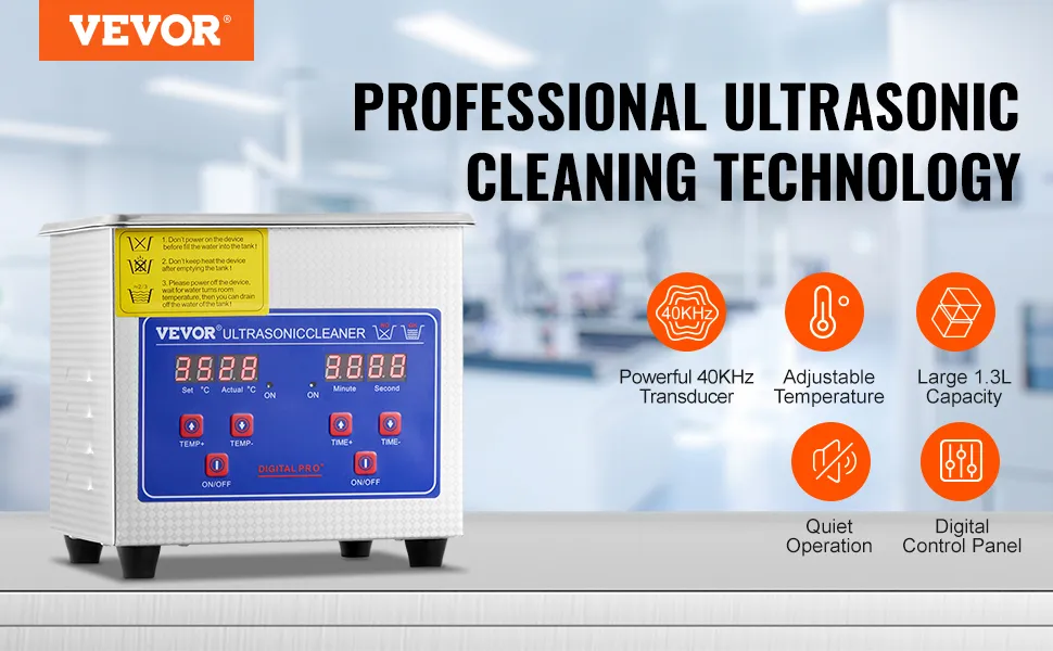 Vevor 313434 Ультразвуковий очищувач 1,3 л ультразвуковий очищувач професійний цифровий ультразвуковий дисплей